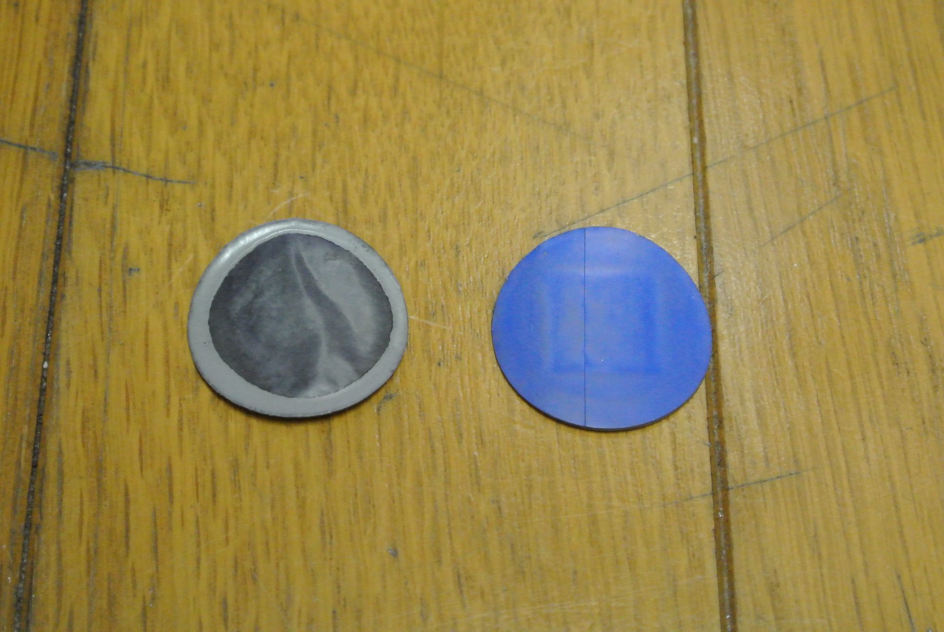パッチの裏の台紙(銀紙)を剥がしてチューブの穴の開いてる部分に貼ります。